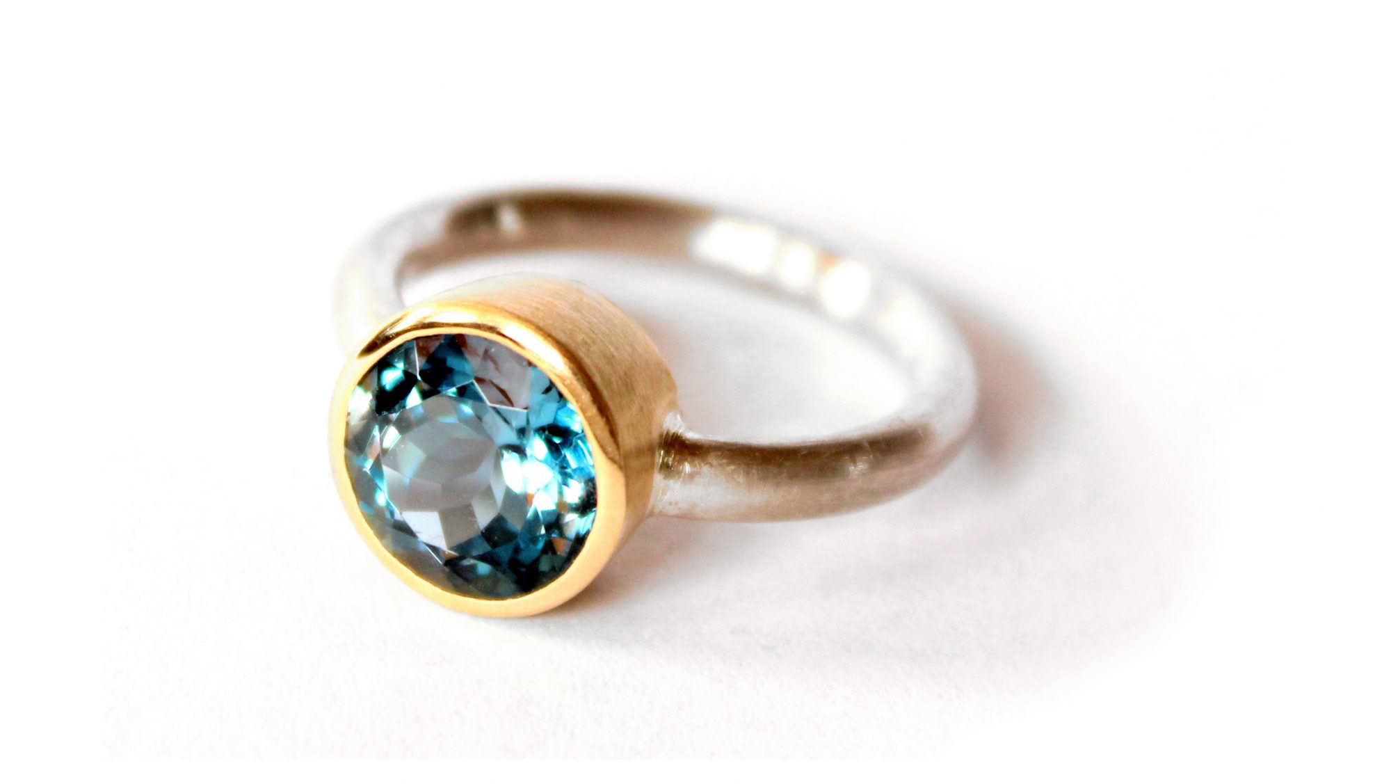 Blauer Topas auf feinem Silberringvon Elkein Ringe, Unikatschmuckan Veröffentlicht am Juni 17, 2023Januar 15, 2024 Silber mit brasilianischem blauen Topas in konischer Fassung aus Gelbgold 750/-