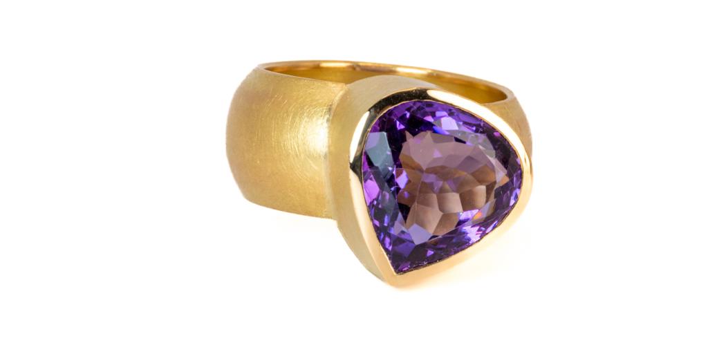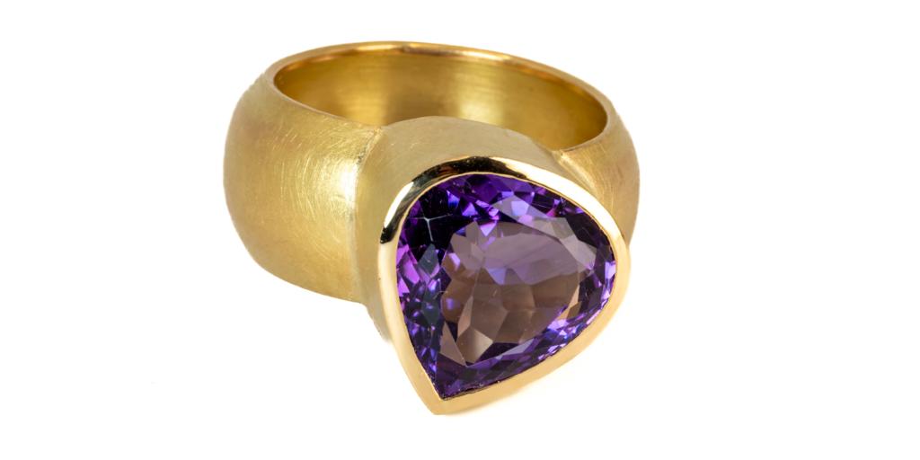 Goldring mit Amethyst-Herzvon Elkein Ringe, Unikatschmuckan Veröffentlicht am Januar 15, 2024Januar 15, 2024 Auftragsarbeit, Ring Gelbgold 750/- mit brasilianischem Amethyst (ca. 12 ct).